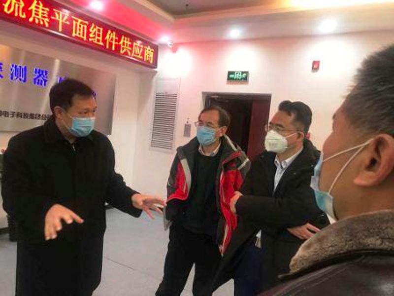 2020年2月28日,集團公司黨組成員、副總經(jīng)理黃興東一行赴電科光電,指導公司疫情防控與復工復產(chǎn)工作情況。
