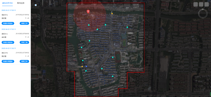 智慧水務(wù)云平臺(tái)可以通過(guò)先進(jìn)的漏損定位算法和DMA的夜間最小流量,能夠及時(shí)發(fā)現(xiàn)漏損并精準(zhǔn)提供漏損位置信息,自動(dòng)判斷、分析各DMA是否泄漏以及當(dāng)前泄漏水平,為制定檢漏方案提供依據(jù)。在出現(xiàn)停斷水或爆管等突發(fā)事件時(shí),通過(guò)智慧水務(wù)云平臺(tái)的漏損定位,幫助實(shí)現(xiàn)排查縮小范圍,減輕一線(xiàn)工作人員排查難度,減少居民停斷水時(shí)間。